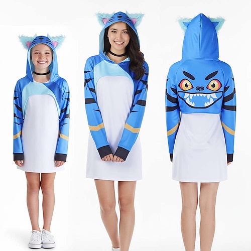 Von koreanischen Idolen inspiriert Popstar Blauer Tiger Kostüm 2 Teile Karnevalskostüm Virtuelles Idol for Damen Mädchen Erwachsene Kinder Halloween Karneval Leistung Comic-Konzert Anime Expo