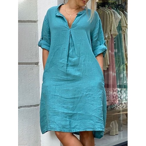 Per donna Abito Midi Finto cotone e lino Abito a Tubino Vestito Casual Vacanza Essenziale Moderno Quotidiano Weekend Vestibilità comoda Semplice Manica 3/4 Girocollo Blu Nero Verde Albicocca Estate