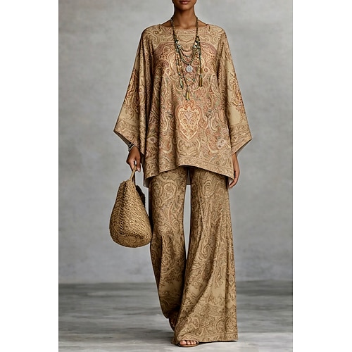 Per donna Set di Pantaloni Manica Lunga Girocollo Grafico Paisley Stampato Moda Streetwear Casuale Quotidiano All'aperto Rosa Viola Arancione Primavera Estate Vestibilità comoda