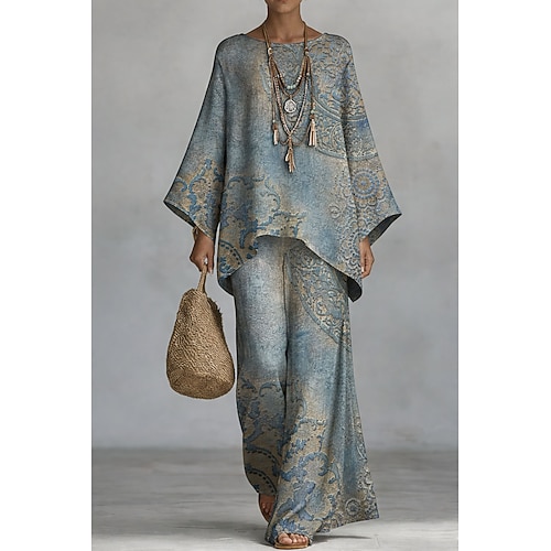 Per donna Set di Pantaloni Bolero Manica 3/4 Girocollo Floreale Grafico Stampato Moda Streetwear Casuale Quotidiano All'aperto Blu Estate Vestibilità comoda