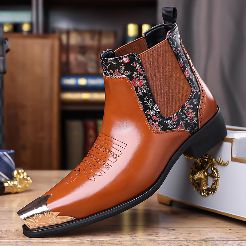 Men's Brown Faux Leather Chelsea Boots – Sleek and Elegant, Ideal for Formal Events, Business Casual and Daily Wear