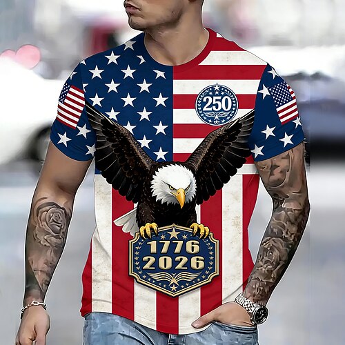 4 luglio 2026 250° Giorno della Memoria T-shirt da Uomo Manica Corta Stampa 3D Bandiera USA Casual