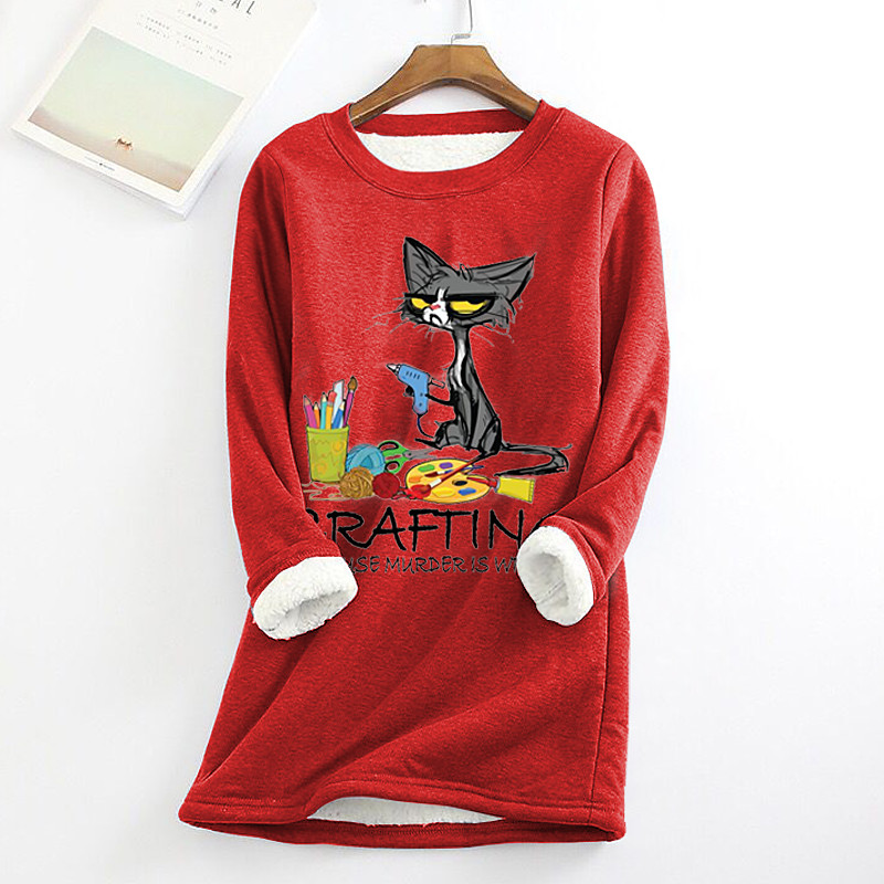 Women's Fleece Lined Pullover Sweatshirt Pajamas Cat Warm Fuzzy Festival Long Sleeve Round Neck Crewneck Long Tops Casual Sports Print Yellow Pink Red Blue Gray Fall Winter