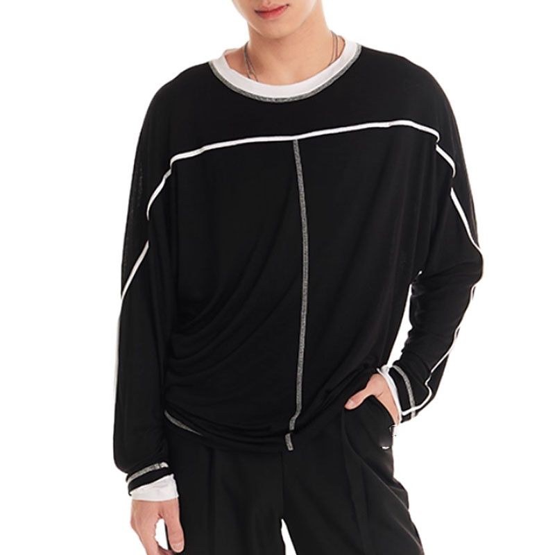 Latin Dance Top Splicing Men's Performance Daily Wear Long Sleeve Tencel