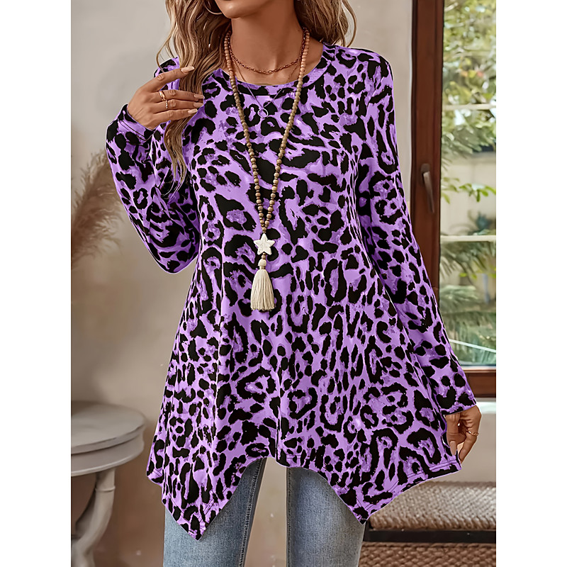 Women's Tunic Graphic Leopard Vintage Fashion Casual Long Sleeve Crew Neck Long Tops Daily Weekend Print Blue Pink Red Purple Brown Fall Winter