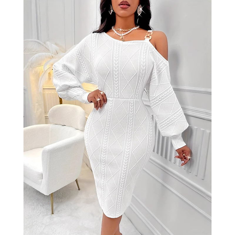 Women's Long Dress Maxi Dress White Dress Casual Dress Sheath Dress Elegant Fashion Modern Daily Vacation Going out Regular Fit Plain Long Sleeve Cold Shoulder White Spring Fall