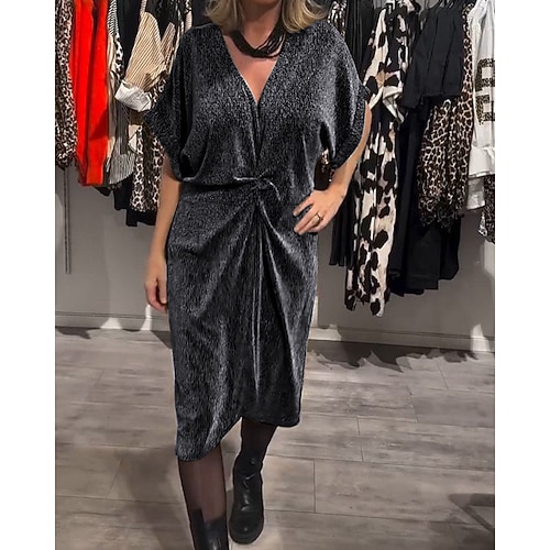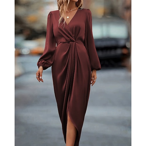 Per donna Abito Midi Abito nero Vestito Casual Abito a Portafoglio Elegante Moda Moderno Quotidiano All'aperto Uscire Vestibilità regolare Semplice Manica Lunga Scollo a V Rosa chiaro Nero Rosa Verde
