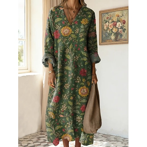 Per donna Abito Midi Abito cachemire Vestito Casual Abito Invernale Vestito T-Shirt Casual Data Vestibilità regolare Floreale Paisley Manica Lunga Girocollo Verde scuro Blu inchiostro Marrone Autunno