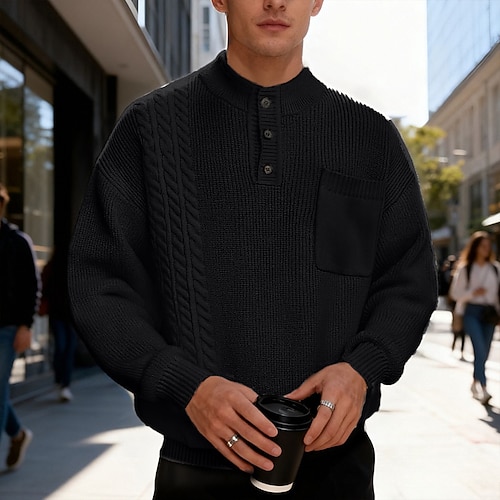 Per uomo Maglione Maglione a maglia A Coste Maglia Top Regolari Bottoni Lavorato a maglia Semplice Colletto Mao Moda Essenziale Vacanza Abbigliamento quotidiano Abbigliamento Autunno Inverno Nero