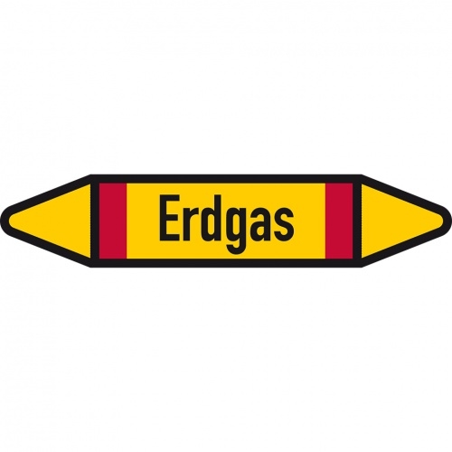 Aufkleber I Rohrleitungsetikett Erdgas, DIN 2403, gelb/schwarz/rot, für Ø 60-90mm, 252x52mm, 3/Bogen I 4 Stk