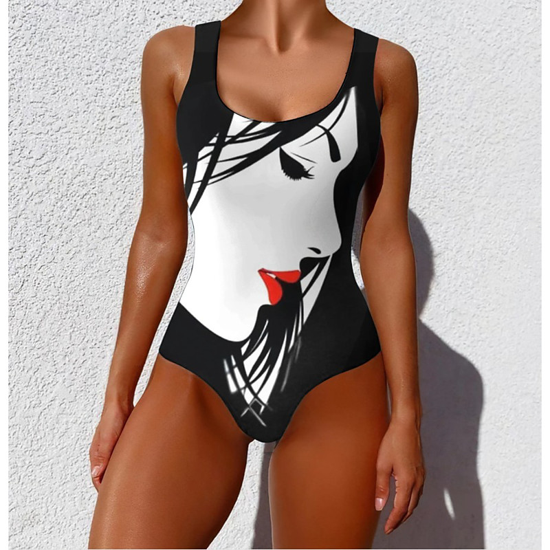 Women's One Piece Swimsuit Slimming Monokini Briefs Tummy Control High Waist Slim Backless Vacation Vintage Ombre Graphic U Neck Sleeveless Bathing Suits