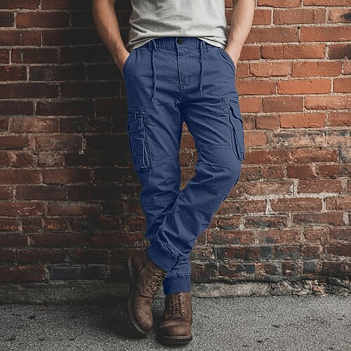 Per uomo Pantaloni Cargo Pantaloni Elastico in vita Coulisse Multi-tasche Semplice Indossabile All'aperto Quotidiano Campeggio Escursionismo Moda Classico Nero Verde militare