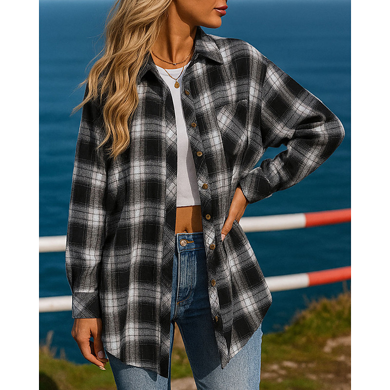 Women's Shirt Jacket Lounge Top Long Sleeve Top Athleisure Fall Plaid Checkered Lightweight Outdoor Travel Sports Sportswear Activewear Black Yellow Red