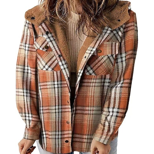 Per donna Cappotto Invernale Giacca Camicia Caldo Confortevole Patchwork Bottoni Moda Casual Plaid Vacanza Streetwear Casuale Abbigliamento quotidiano Regolare Con Cappuccio Vestibilità regolare