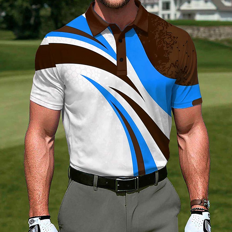 Men's Geometric Golf Polo Sports Polo Shirts Short Sleeve Polo Shirts Collared Shirts Sportswear Casual Athleisure Outdoor clothing Daily Wear Buttons Summer Red Blue Green