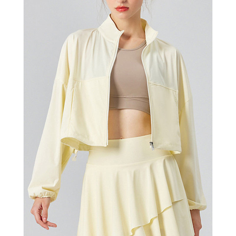 Women's Running Jacket Rain Coat Lightweight Cropped Long Sleeve Top Solid Colored UPF 50 Sun Protection Windproof Quick Dry Pilates Running Yoga Sportswear Activewear Black White Yellow