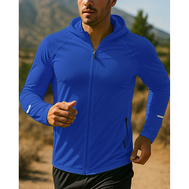 Men's Running Jacket Outdoor Jacket Hooded Jacket Drawstring Pocket Long Sleeve Top Athleisure Solid Colored Windproof Quick Dry Moisture Wicking Breathable Fishing Hiking Running Sportswear