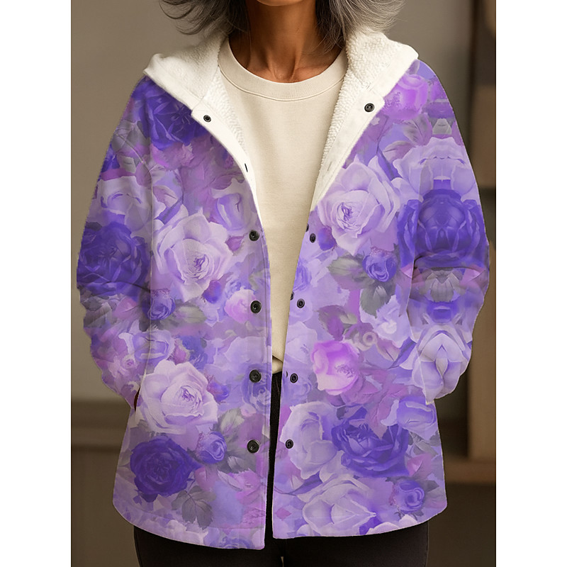 Women's Winter Coat Winter Jacket Fleece Lined Warm Quick Dry Buttons Daily Modern Casual Comfortable Floral Vacation Athleisure Daily Hooded Loose Fit Sleeveless Outerwear Light Blue Yellow Pink