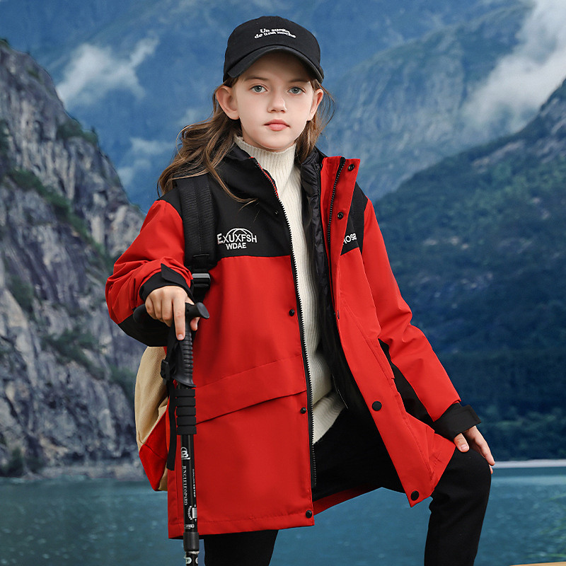Kids Girls' Down Jacket Hiking Jacket Outdoor Jacket 3 in 1 Jacket Puffer Jacket Color Block Sports Pocket Waterproof Keep Warm Windproof Outdoor Coat Outerwear 5-12 Years Winter Blue Black White