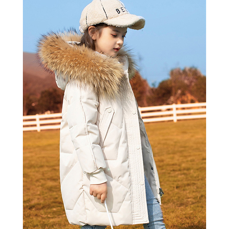 Kids Girls' Down Jacket Outdoor Jacket Puffer Jacket Solid Color Fashion Fur Trim Keep Warm Windproof Outdoor Coat Outerwear 4-12 Years Fall Black Yellow Red