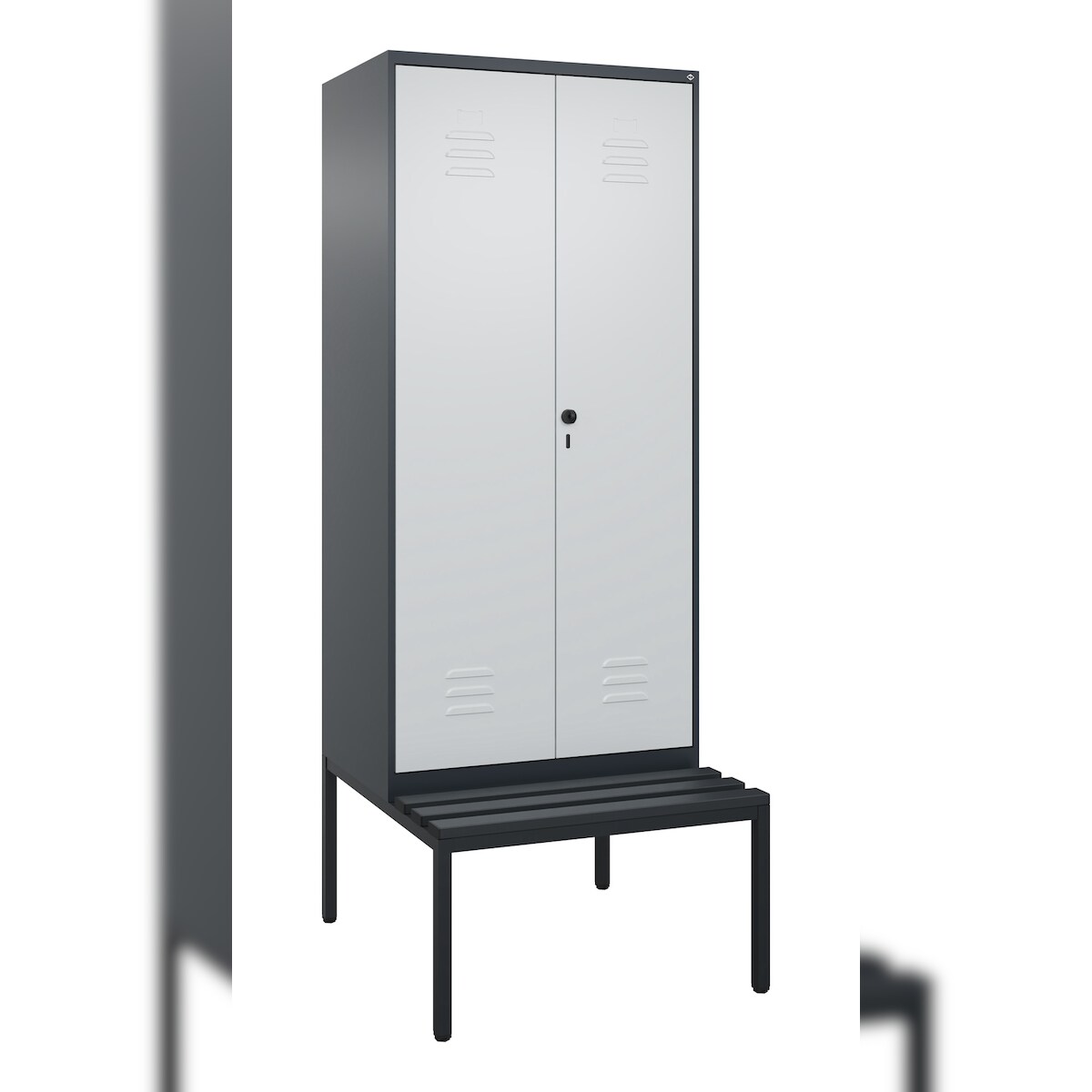 C+P Doppel-Spind Classic PLUS Kunststoff untergebaute Bank 2 Abteile Trennwand HxBxT 212x80x82cm Sicherheitsdrehriegel Anthrazit/Hellgrau von PROREGAL