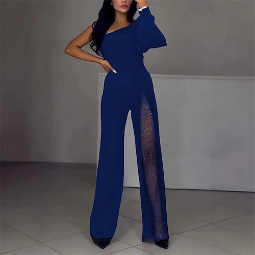 Per donna Tuta Streetwear Tinta unica Manica Lunga Gamba larga Monospalla Rete Vacanza Quotidiano Vestibilità regolare Nero Bianco Vino Primavera