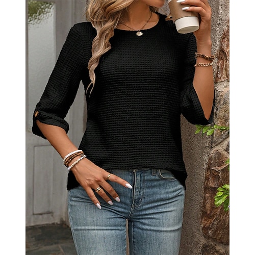 Per donna Blusa Tinta unica Elegante Essenziale Casual Manica Lunga Girocollo Top Regolari Quotidiano Nero Bianco Blu Cachi Estate Primavera