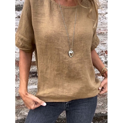 Per donna Blusa Tinta unica Elegante Casual Mezza Manica Scollo a Barca Top Regolari Quotidiano Bianco Giallo Verde Estate Primavera