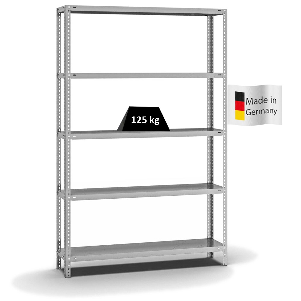 PROREGAL Fachbodenregal Schraubsystem | Grundregal | HxBxT 200x130x30cm | 5 Ebenen | Fachlast 125 kg | Beidseitig nutzbar | Verzinkt