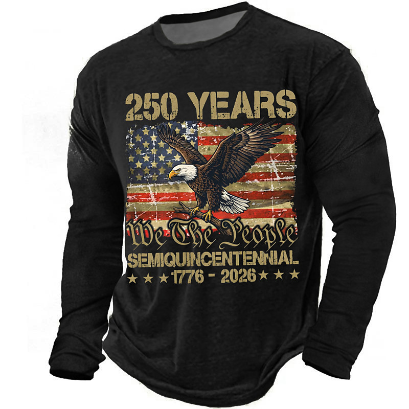 America's 250th Anniversary Men's America's 250th Anniversary T Shirt Long Sleeve T shirt 3D Print Crew Neck Shirt Daily Casual Daily Travel Party Blue Black Red Summer Spring Fall Clothing Apparel S