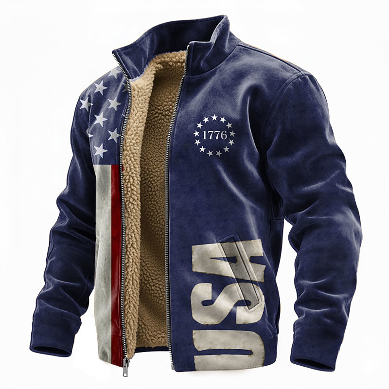 America's 250th Anniversary Men's American US Flag Fleece Jacket Sweatshirt Fashion Daily Simple Casual Stand Collar Zip Outdoor Vacation Gift Going out Blue White 1 Blue 2# White Pocket Front Zipper