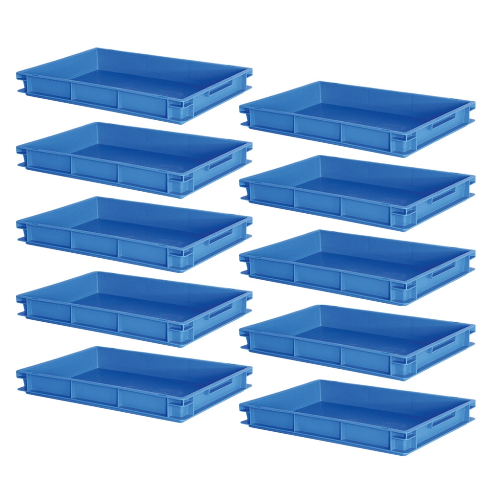 BRB 10 Euroboxen mit 2 Griffleisten, LxBxH 600 x 400 x 75 mm, 13 Liter, blau