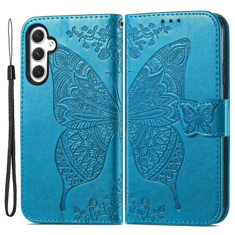 Mobilskal till Samsung Galaxy A55 5G KonstLäder Fjärilsmönster - Blå
