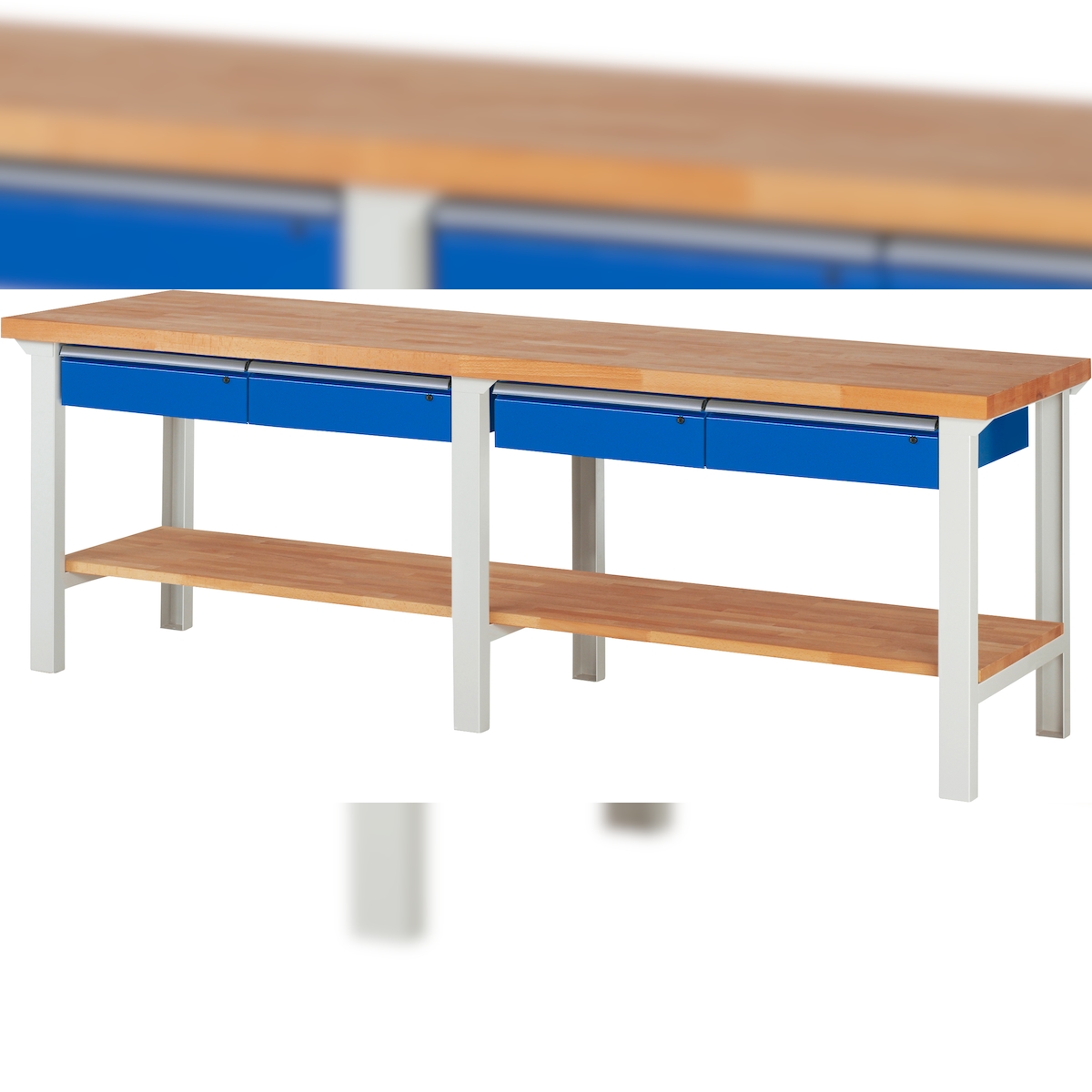 PROREGAL Werkbank Serie 7000 - Modell 7002 | HxBxT 84x250x70cm | 4x Schublade + Ablageboden | Schubladenmaße 4x150mm