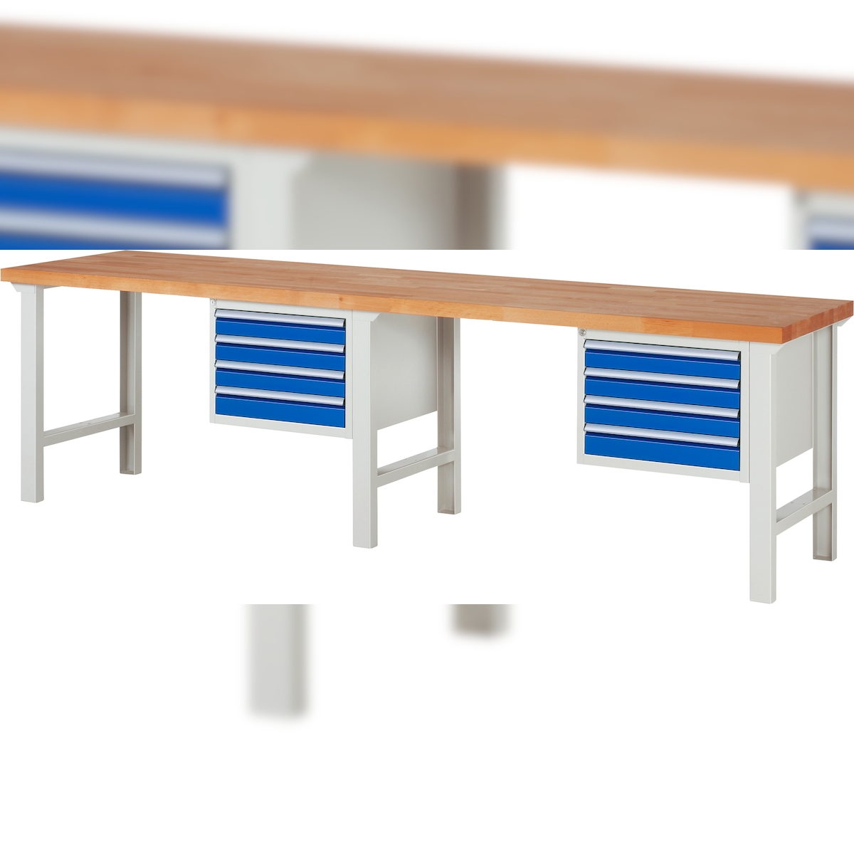eurokraft pro Werkbank, Baukastensystem Serie 7000, 4 Schubladen, 2 Türen, extrabreit, BxT 3000 x 700 mm