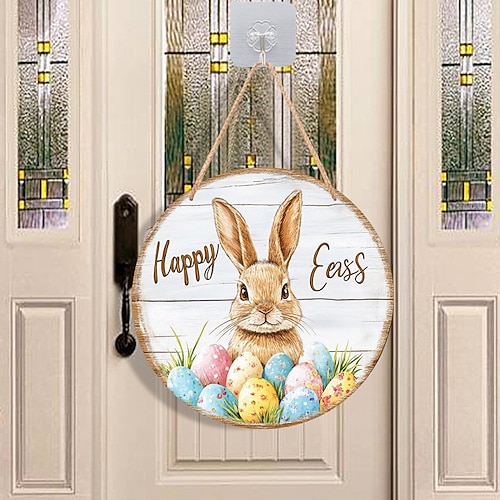 cartello pasquale in legno coniglietto benvenuto appendino porta atmosfera festiva decorazione murale sfondo festa di primavera decorazione artigianato in legno fatto a mano per casa o veranda