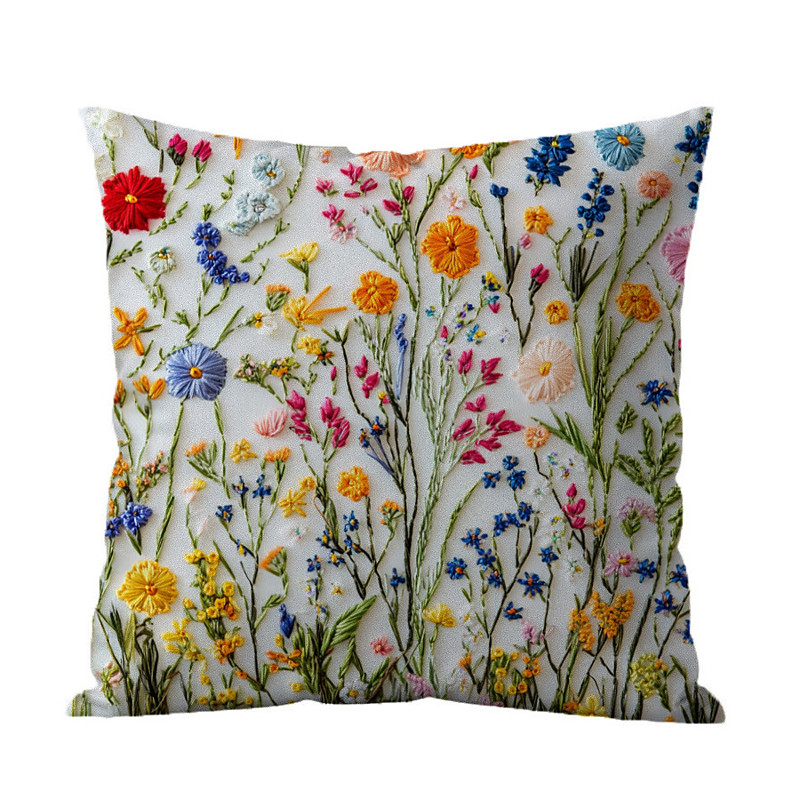 Floral Pattern Pillow Cover 2D Flat Print Soft Comfortable Cushion Case with Faux embroidery for Living Room Sofa Bedroom Home Decoration