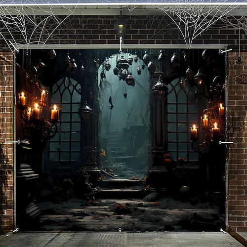 Halloween Copertura per porta del garage Grande appeso Porta del Castello 3D Gotico punk oscuro Da serata All'aperto Sfondi di ripresa Yarda Casa infestata Arredamento per la casa