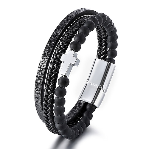 Bracciale da uomo con chiusura magnetica: design in pietra naturale e similpelle, elegante e resistente, perfetto per l'uso casual e quotidiano.