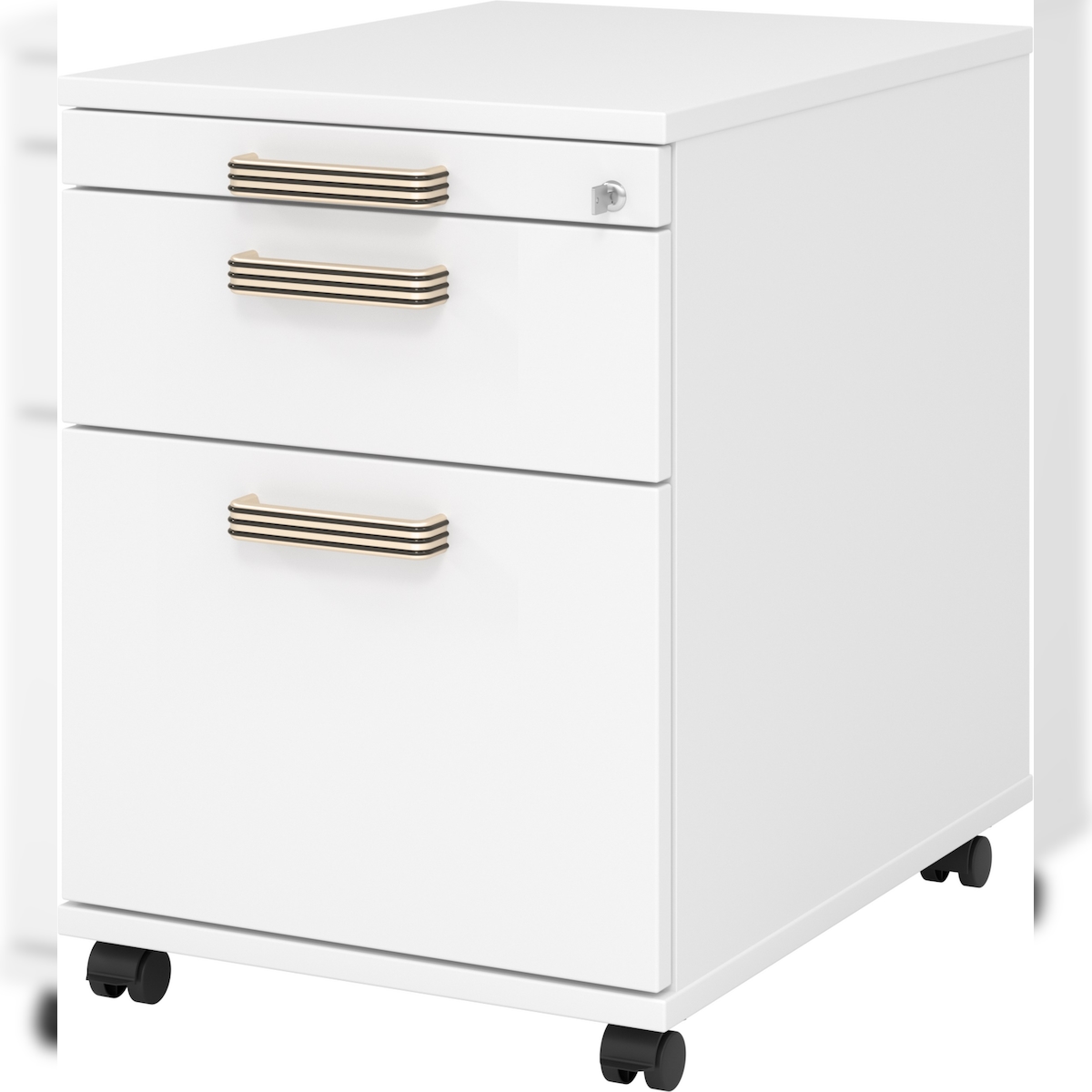 bümö Rollcontainer mit Hängeregistratur, Container abschließbar aus Holz in weiss - Rollwagen für's Büro mit Hängeregister als Schreibtisch