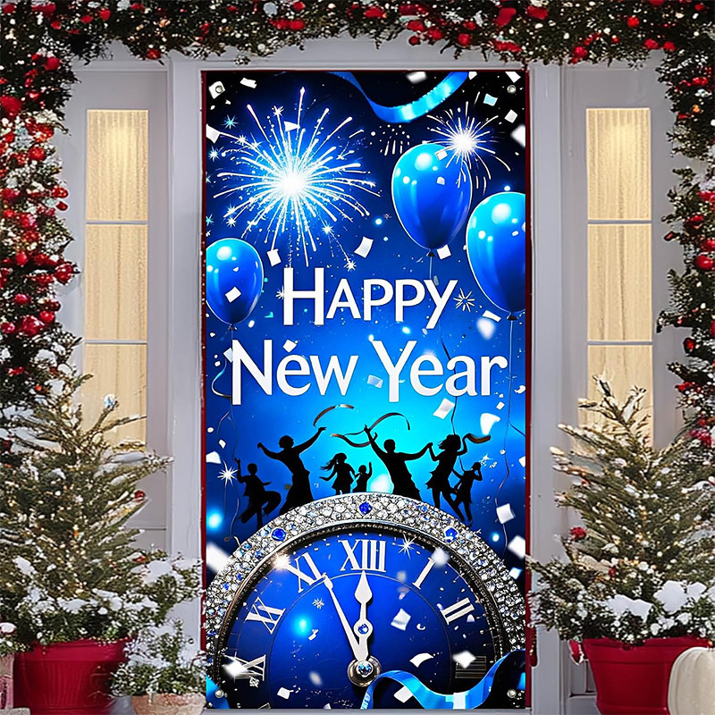 New Year Posters Door Cover Outdoor Banners Happy New Year 2026 Cute Modern 3D Party Dorm Teens Room College Dorm Guys Man Cave Frat Bedroom Shooting Backgrounds Home Decor