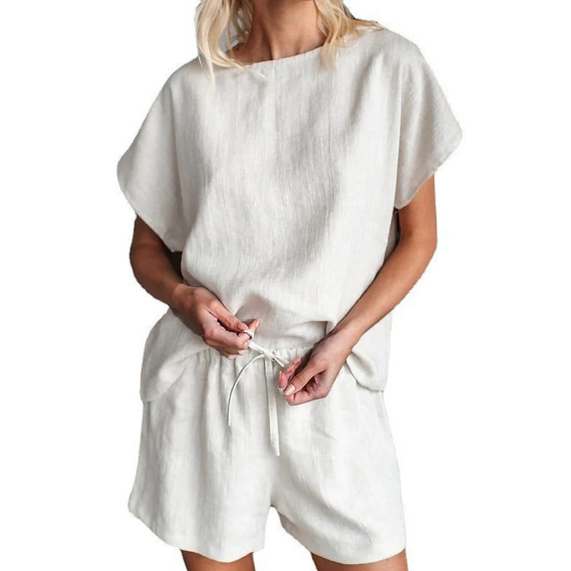 Women's Fashion Streetwear Cotton Linen Sets Pants Sets Short Sleeve Crew Neck Plain Daily Wear Date Pink Blue Green Summer Regular Fit