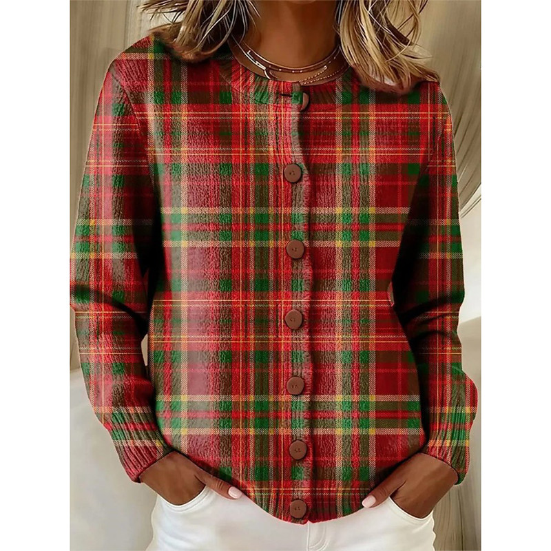 Women's Cardigan Fashion Daily Casual Graphic Plaid Ribbed Crew Neck Floral Buttons Print Long Sleeve Regular Tops Knit Daily Outdoor Date Blue Red Fall Winter