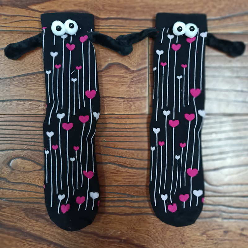 Valentine's Day Couple Heart Magnet Socks, Breathable Mid-Calf Socks with Hand-Holding Design, Perfect Valentine's Day Gift, Ideal for Couples, Cozy and Stylish Holiday Wear