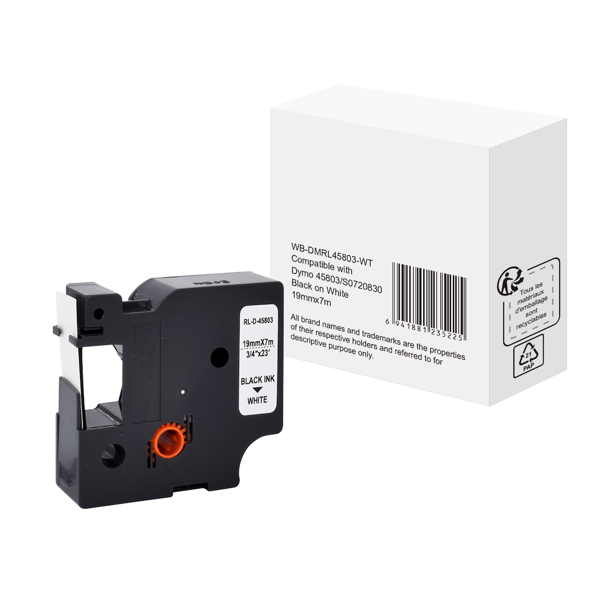 Schriftband wie Dymo S0720830 19mmx7m schwarz auf weiß