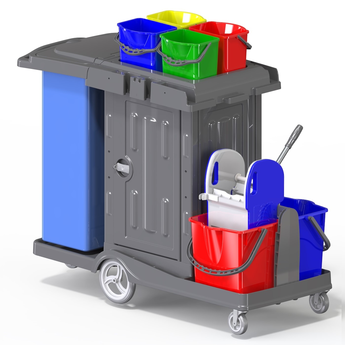 CleanSV® Reinigungswagen PE Kassel Secure mit abschließbarem Schrank, Müllsackhalter, 2 x 18 L Eimer, 4 x 5 L Eimer