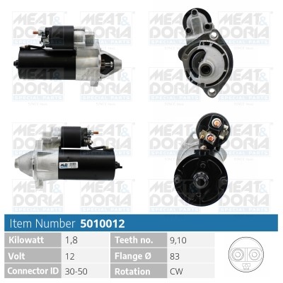 Käynnistin 12V Meat & doria 5010012 - audi, skoda, vw - OE 068 911 023 S, 068 911 023 SX, 068 911 024 B