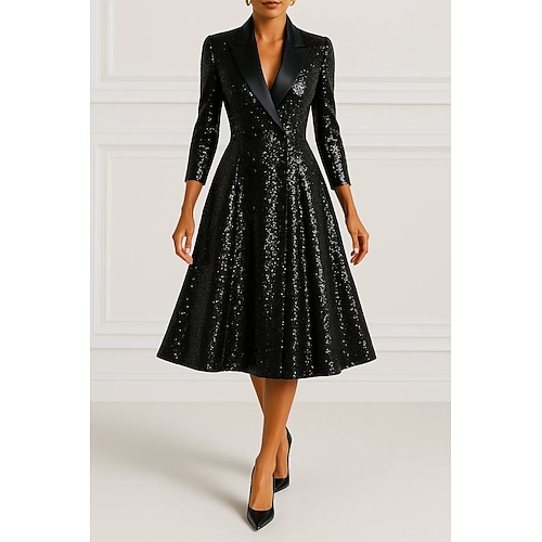 Per donna Da donna Abito da smoking Linea ad A Formale Raso Strass Elegante Vintage Manica 3/4 plissettata Lunghezza Tè Risvolto a punta Doppiopetto