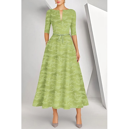 Linea ad A Lunghezza Tè Vestito da Festa Abito da Cocktail Abito da invitata a nozze Abito da Sera Elegante Vintage Manica 3/4 Colletto a Camicia Matrimonio Formale Jacquard con Tasca