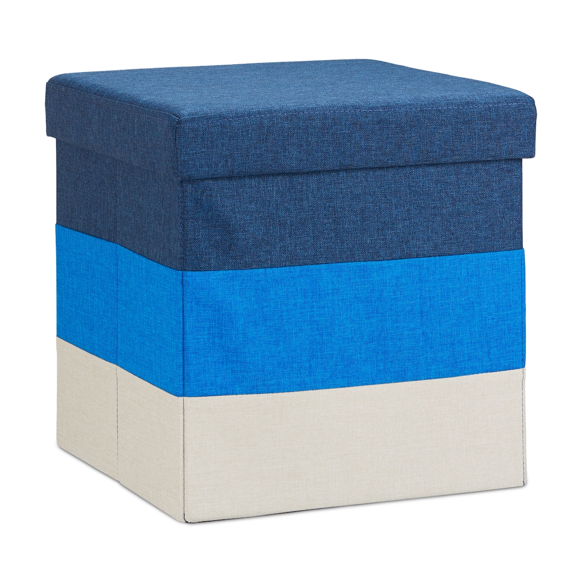 Relaxdays Polster Hocker mit Stauraum, gestreifter Sitzhocker, faltbarer Polsterhocker HBT: 38 x 38 x 38 cm, blau-weiß